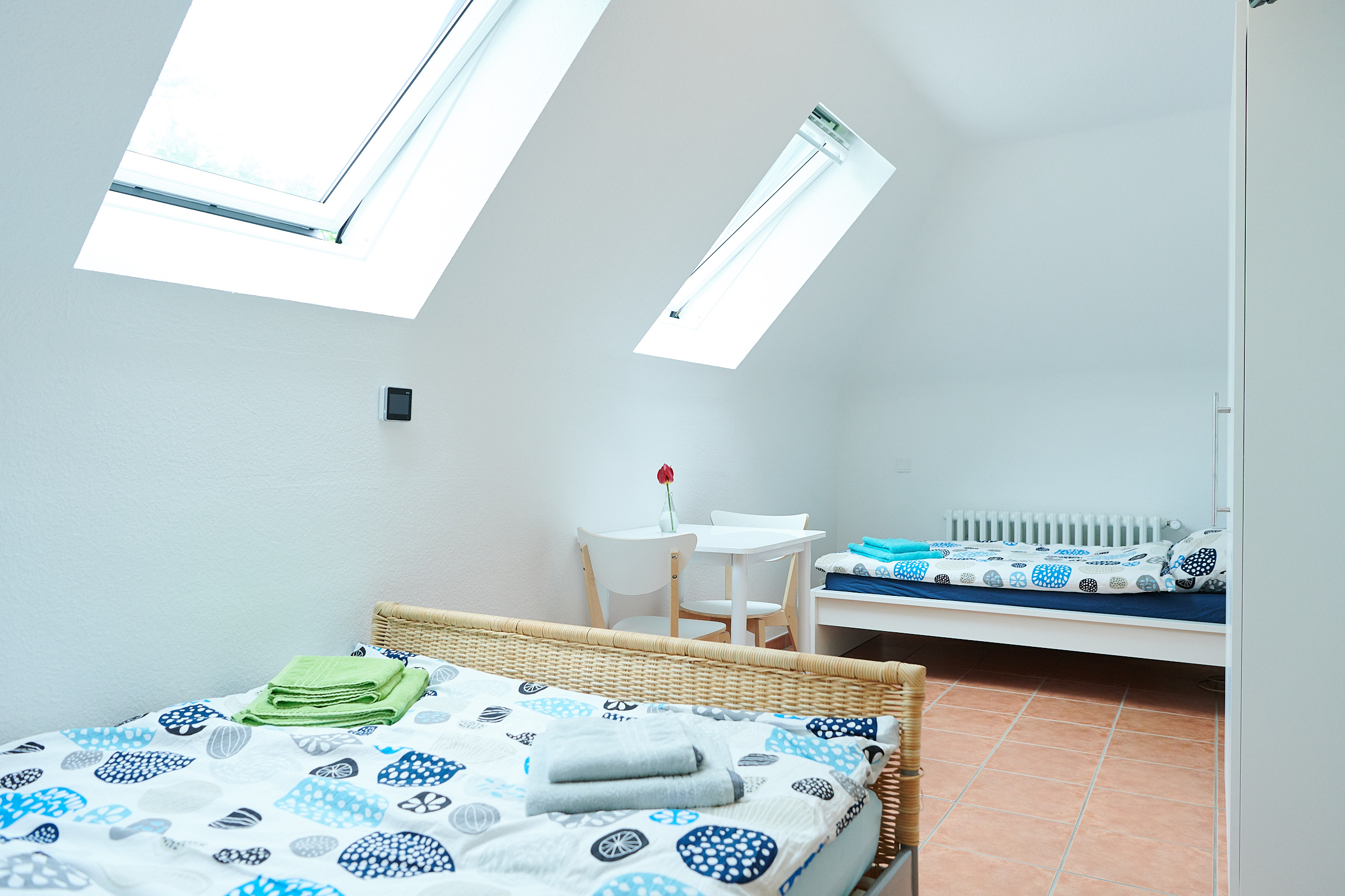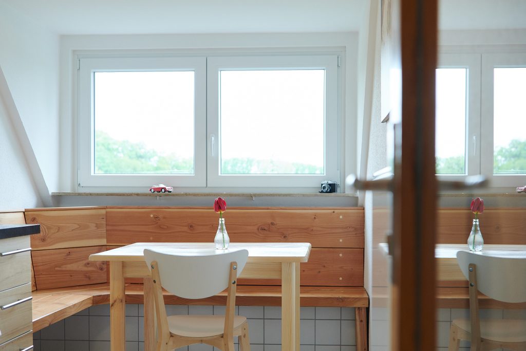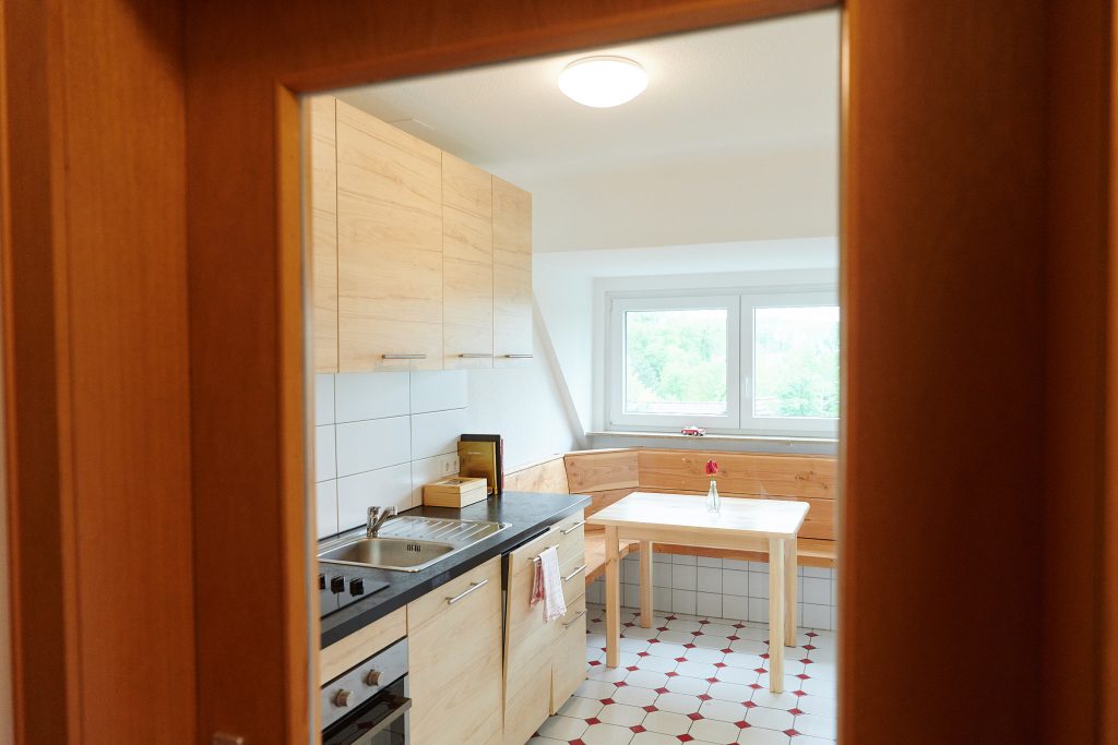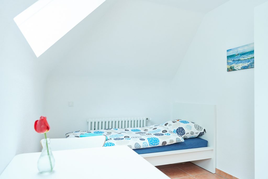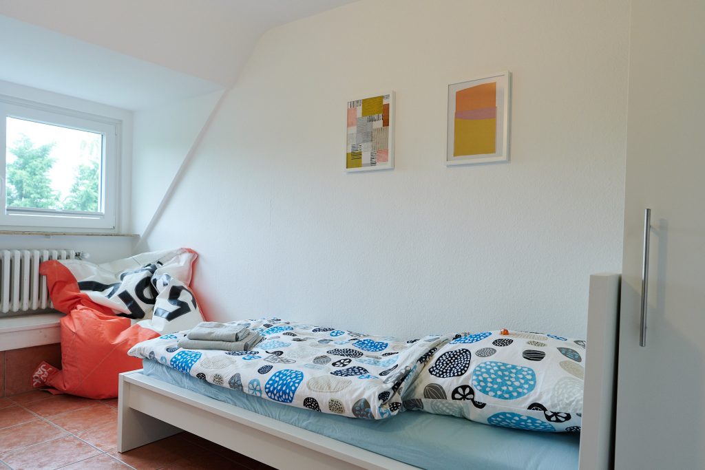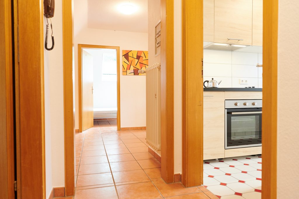 Im Sommer 2018 wurde das gesamte Haus aufwendig renoviert. Die Einliegerwohnung im 1.OG als modernes möbliertes 55qm Appartement umgebaut. Die Wohnung verfügt über eine vollausgestattete Wohnküche mit gemütlicher Eckbank und Platz für 4-5 Personen. Das Tageslicht Bad verfügt über eine große Dusche. Separat liegen die hellen und freundlichen Schlafzimmer, einmal mit Doppelbett und zweimal mit Einzelbett. Sowohl in den Schlafräumen, als auch in der Wohnküche befinden sich Flachbildfernseher.