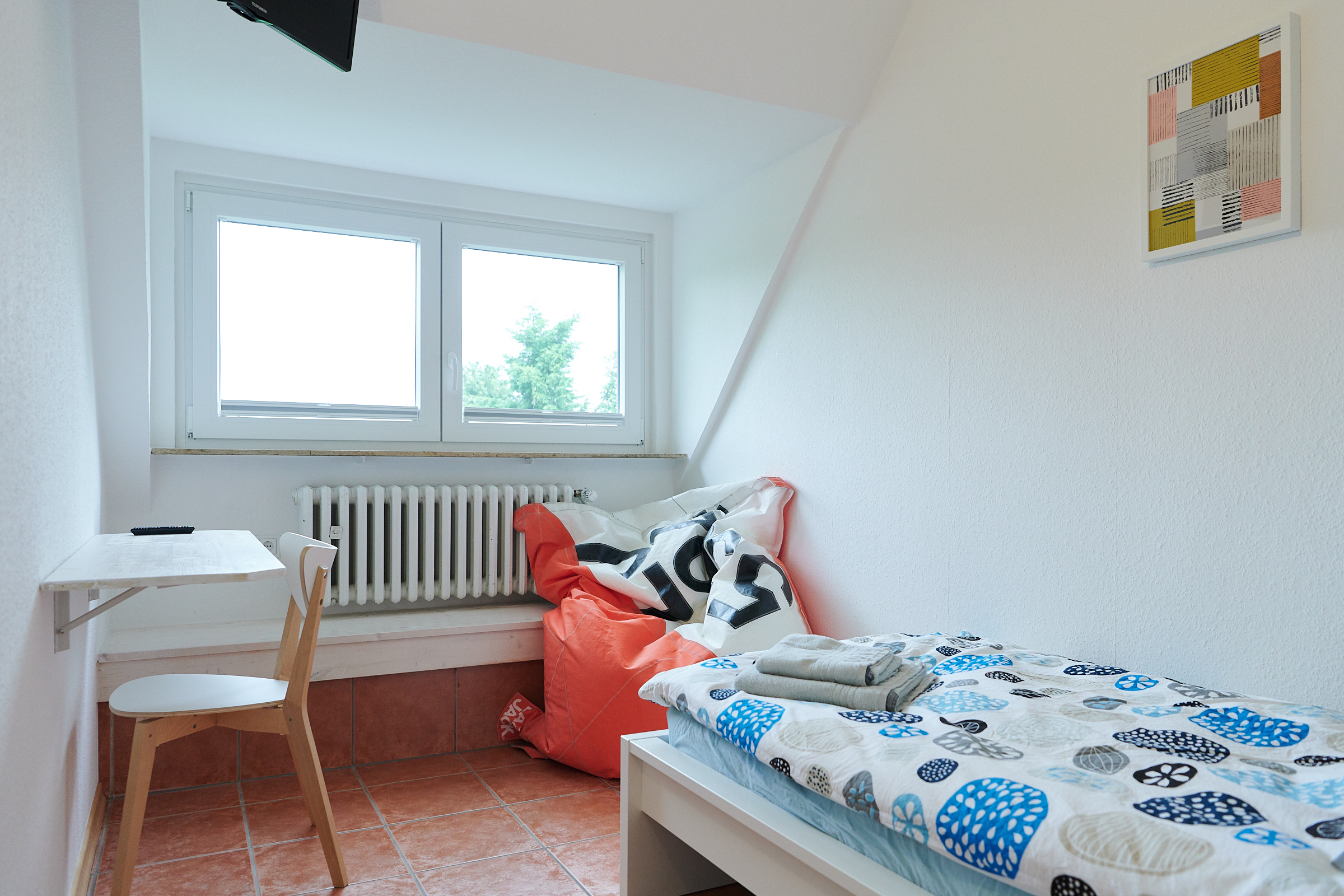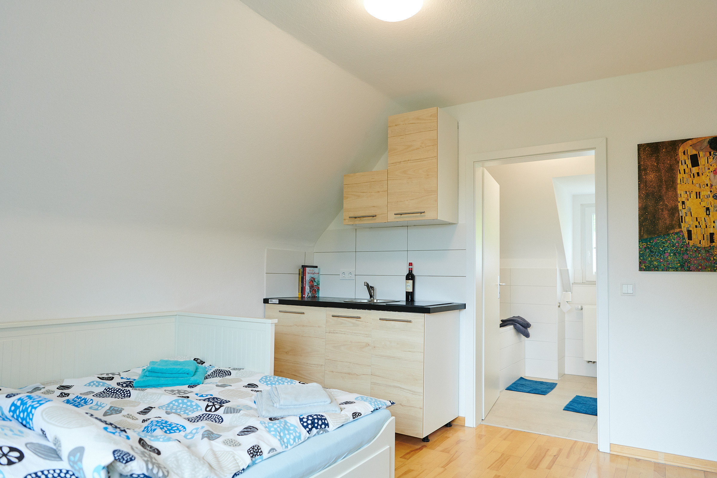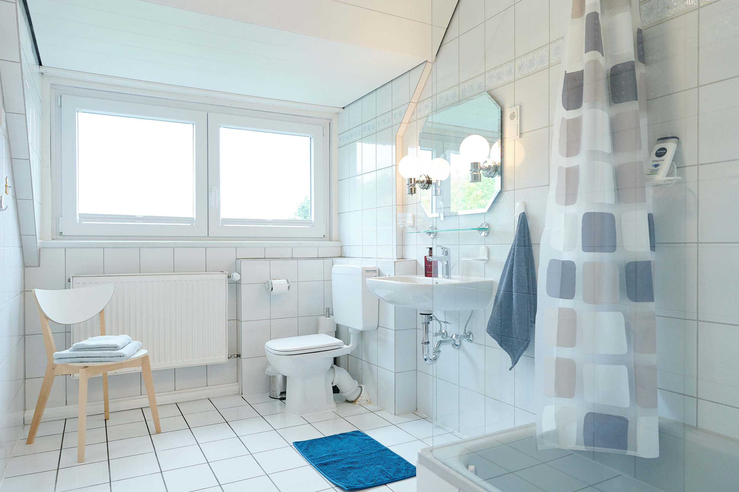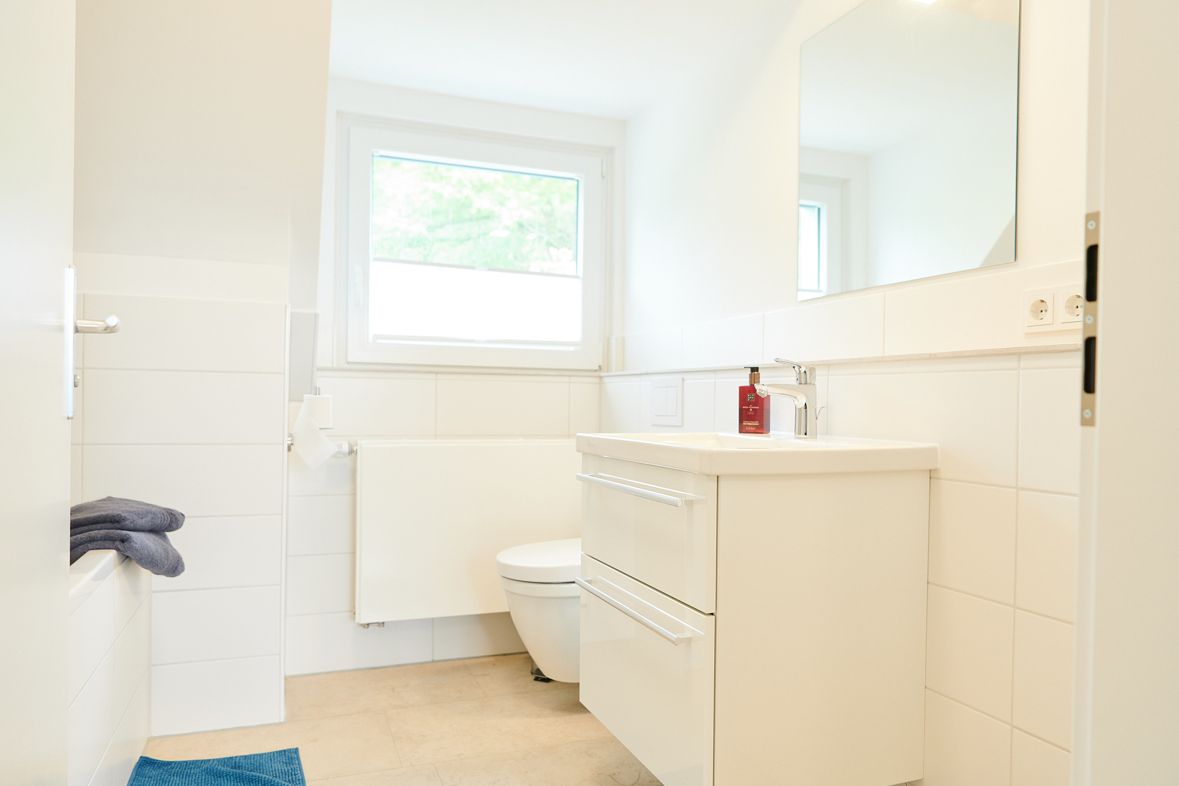 Im Sommer 2018 wurde das gesamte Haus aufwendig renoviert. Die Einliegerwohnung im 1.OG als modernes möbliertes 55qm Appartement umgebaut. Die Wohnung verfügt über eine vollausgestattete Wohnküche mit gemütlicher Eckbank und Platz für 4-5 Personen. Das Tageslicht Bad verfügt über eine große Dusche. Separat liegen die hellen und freundlichen Schlafzimmer, einmal mit Doppelbett und zweimal mit Einzelbett. Sowohl in den Schlafräumen, als auch in der Wohnküche befinden sich Flachbildfernseher.
