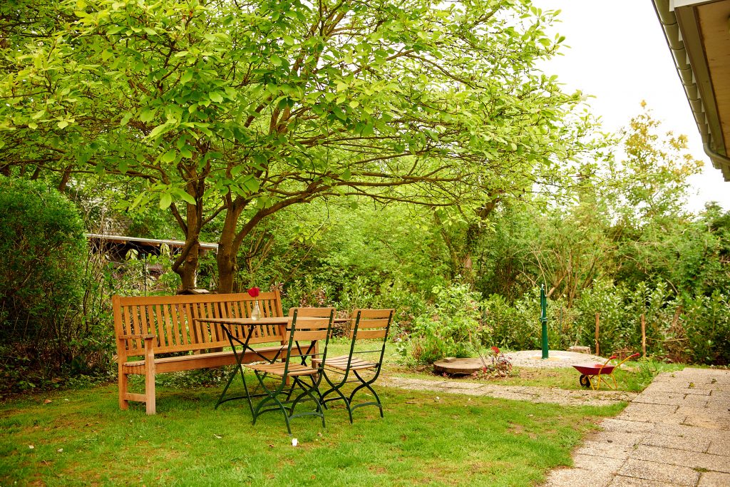Ein kleiner separater Garten mit Sitzecke und Grill steht zur Verfügung.